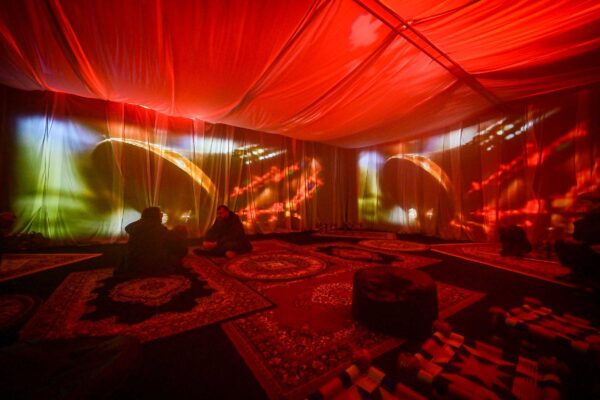 Sonic Swirl & Silence was a light and sound installation created from images and recordings of some of the most important Sufi sites in Pakistan – including the shrines dedicated to Sufi saints Lal Shahbaz Qalandar and Laki Shah Sadar, and to the revered Sufi poet Shah Abdul Latif Bhittai. This atmospheric installation introduced us to the devout Sufis who journey to these sacred sites, the music and dance that’s such a vital part of Sufism, and the extraordinary power of this deeply spiritual practice.