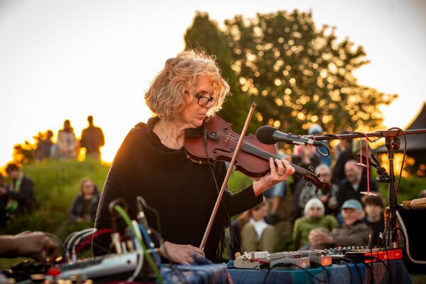 Eeshar Singh, virtuoso on the santoor, came together with electronic duo Gilank to see out the day with a durational performance at dusk.