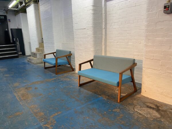 You’ll wait for your session to start in this holding area. (There will be some chairs available with arms).