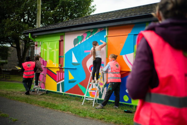 The four green walls of Denholme Youth Cafe hold a world of imagination and community spirit. Over the summer of 2025, a team of artists led by Creative Practitioner Amy Bairstow brought colour and creativity to life through an 18-metre mural co-created with the people of Denholme.