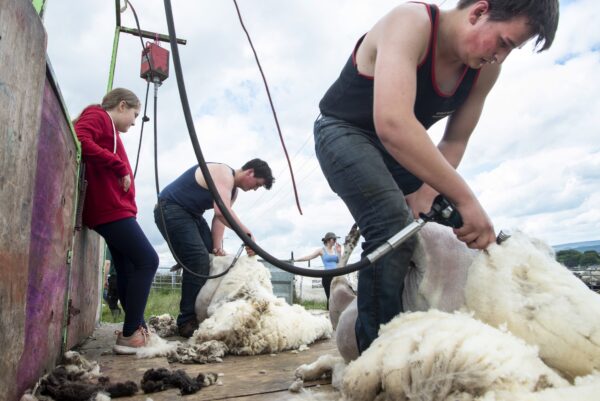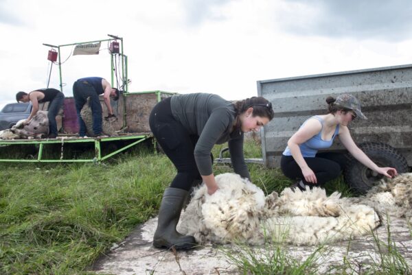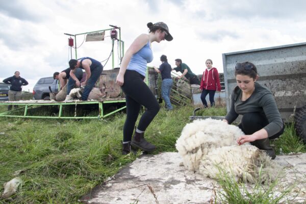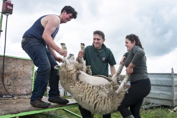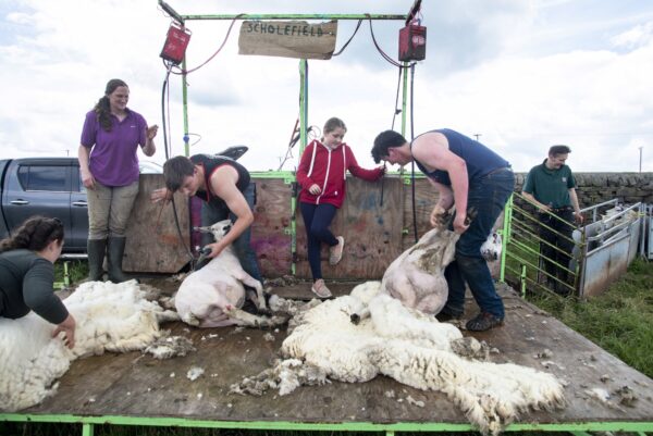 We’re in Denholme, and we’re here today to clip some sheep. These are my uncle’s sheep, we’re all busy just helping out. We’ve got people wrapping up the wool, worming the sheep, and obviously clipping as well.