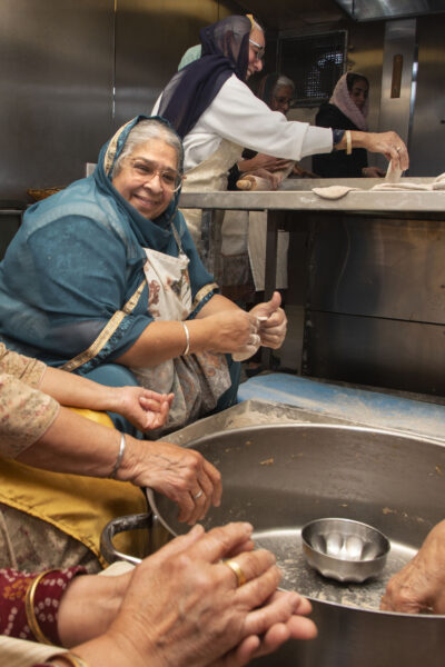 We normally arrive around about half six in the morning to prepare food. We serve seven days a week from approximately 7am, non-stop until 7pm, every day of the year. Whilst cooking we become like a team, and we can discuss stuff and iron out any minor issues. It’s a community knit congregation and it doesn’t matter whether somebody’s a millionaire or a beggar, they have the right to sit anywhere with any other people. Everybody’s equal.