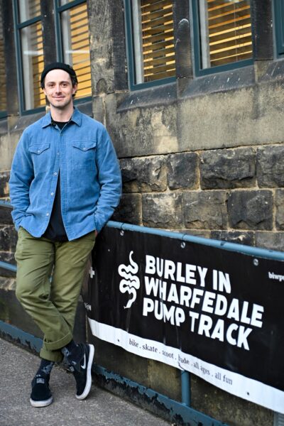 My background is in film. I run a production company, I’m a filmmaker and photographer. Today, we’re in Burley in Wharfedale for the second year of Bike Night, a film festival evening all about bikes, created to help raise money for the Burley and Wharfedale Community Pump Track, which is due to begin construction in February 2026.