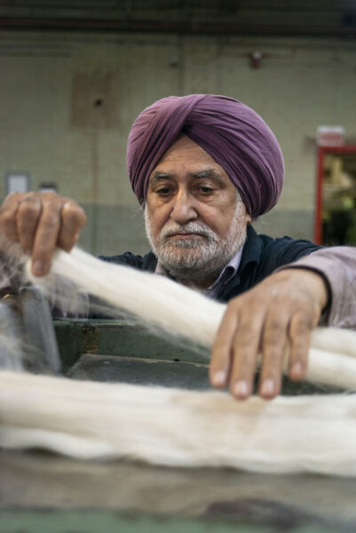 Seal International is a speciality fibre processer in Bradford. We source specialty animal fibres, such as alpaca, mohair, cashmere, camel and other fibre types. We obtain them in a raw state, get them washed and processed into a usable form for the next process, which is spinning. I’m an apprentice trained speciality fibre sorter. I started at 16, I’ve now got 40 years experience so I know my fibre types. Quality is based on fibre length, fibre diametre, fibre colour, and we sort fibres into particular processes and blends going forward. That’s my role.