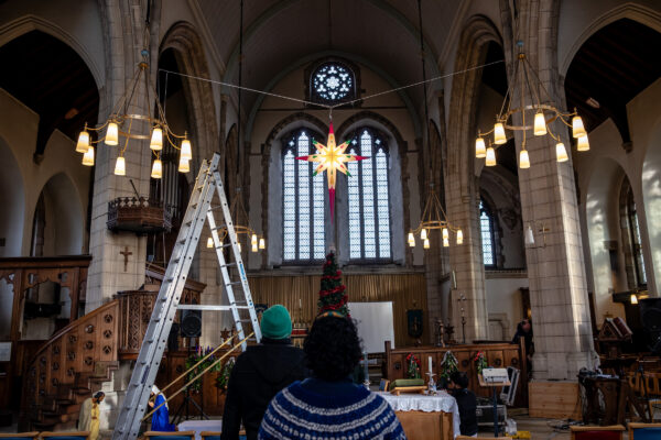 The evening began inside the church with the premiere of a new heritage and animated film by Ahseem Yusuf and Kat Williams, directed by Natasha Joseph. The film brought together voices from across the community — reflections on childhood winters, the craftsmanship of the original star, and the quiet significance of a tradition that had endured even while the light itself was gone.